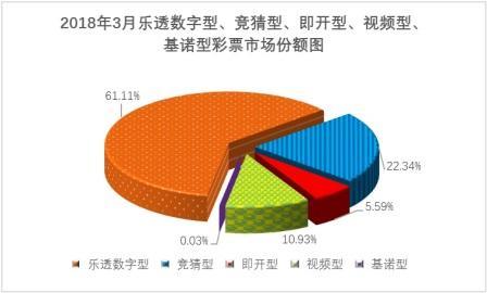 1月至3月累計,樂透數(shù)字型彩票銷售640.31億元,同比增加33.21億元,增長5.5%;競猜型彩票銷售227.05億元,同比增加60.29億元,增長36.2%;即開型彩票銷售59.45億元,同比減少4.49億元,下降7.0%;視頻型彩票銷售114.62億元,同比增加0.40億元,增長0.3%;基諾型彩票銷售0.32億元,同比減少0.13億元,下降28.4%。1月至3月份樂透數(shù)字型、競猜型、即開型、視頻型和基諾型彩票銷售量分別占彩票銷售總量的61.46%、21.80%、5.71%、11.00%、0.03%。