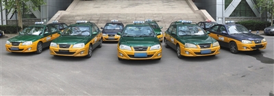 4月23日,北京市刑偵總隊大院內(nèi),停放有10多輛出租車,從外觀來看與普通出租車無異。