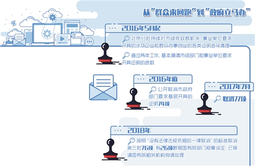 不久前,北京在此前分兩批取消151項(xiàng)市級部門設(shè)定的企業(yè)群眾辦事創(chuàng)業(yè)證明基礎(chǔ)上,再次取消76項(xiàng)證明事項(xiàng),涉及企業(yè)設(shè)立、經(jīng)營許可、困難救助、就讀升學(xué)等各方面。