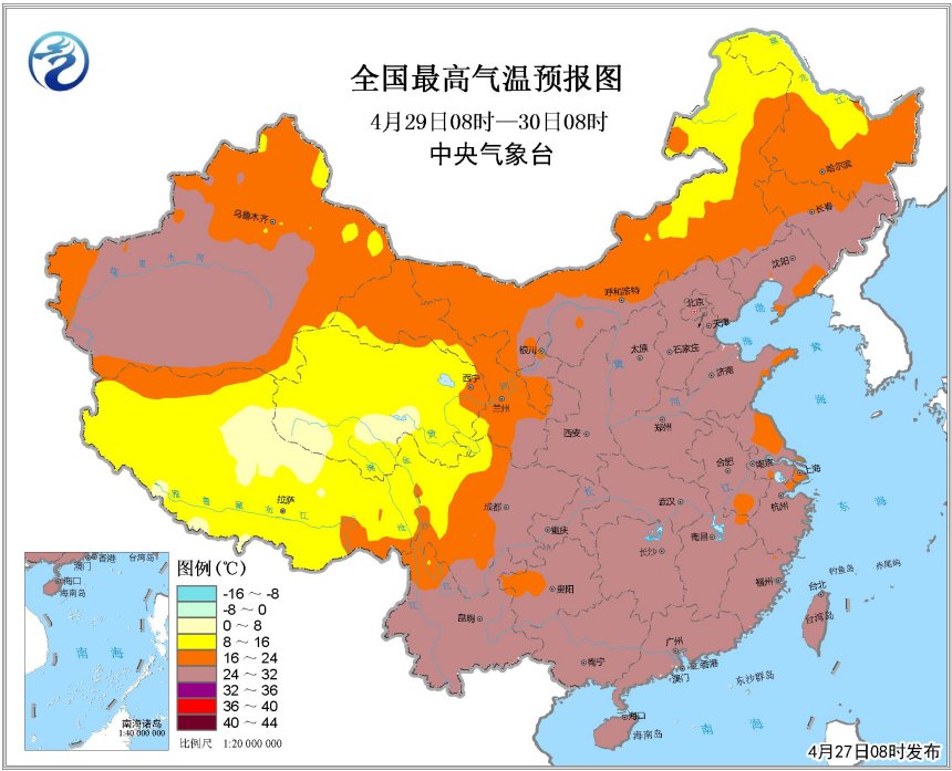 方翀:29日是“五一”小長假第一天,華北至黃淮大部地區(qū)氣溫將達29-30℃。30日起,冷空氣將影響中東部,北方氣溫將有所下降,降溫幅度在4-6℃左右,南方降溫不明顯,華南地區(qū)較為悶熱。