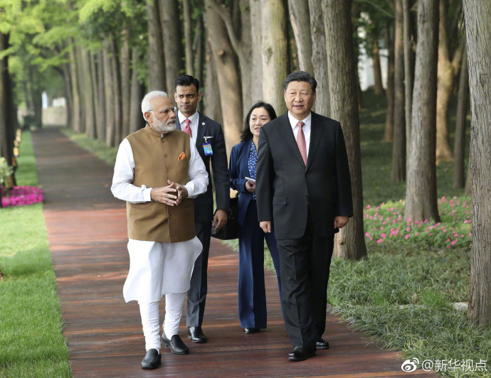 習(xí)近平同印度總理莫迪散步交談
