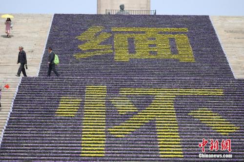 資料圖:3月26日,南京雨花臺(tái)烈士陵園內(nèi)的烈士紀(jì)念碑前布置了由數(shù)萬(wàn)盆鮮花組成的“緬懷”花壇,以此表達(dá)對(duì)革命英烈的紀(jì)念之情。 中新社記者 泱波 攝