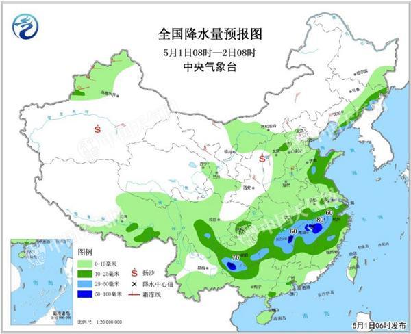 中央氣象臺(tái)預(yù)計(jì),5月1日至3日,我國(guó)中東部自西向東將有一次較大范圍降水天氣過(guò)程,其中,東北地區(qū)東南部、黃淮東部、西南地區(qū)東部和南部、江漢南部、江南大部、華南中西部等地的部分地區(qū)有中到大雨,局地暴雨或大暴雨,上述局部地區(qū)將伴有短時(shí)強(qiáng)降水、雷暴大風(fēng)等強(qiáng)對(duì)流天氣。
