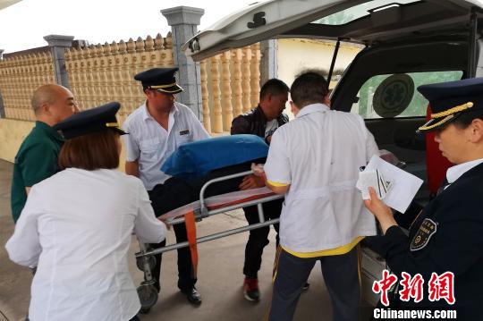 患病旅客被轉(zhuǎn)移至救護(hù)車(chē) 雷祖勝 攝