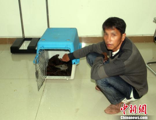 圖為犯罪嫌疑人指認(rèn)走私的平胸龜。黃艷仙 攝