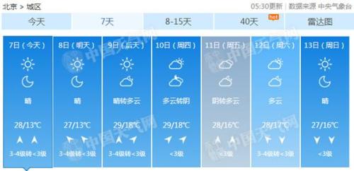 本周北京天氣平靜最高溫達(dá)29℃ 晝夜溫差超10℃