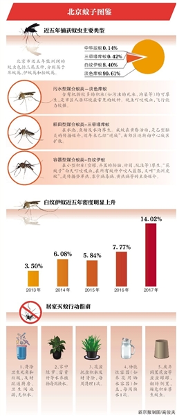 根據(jù)北京市疾控中心監(jiān)測(cè),近年來(lái)登革熱的主要傳播媒介“花蚊子”在本市蚊種構(gòu)成比例顯著升高,從2013年3.50%上升至2017年14.02%。2018-05-10 07:28:50