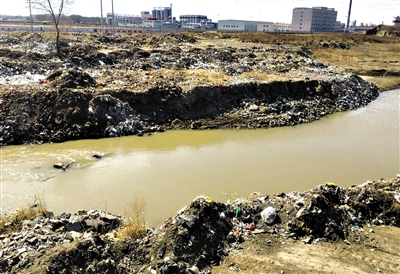 4月7日,天義鎮(zhèn)崗崗營(yíng)子村,西遼河上游的老哈河從垃圾場(chǎng)中間流過(guò)。(新華社記者 王靖 攝)