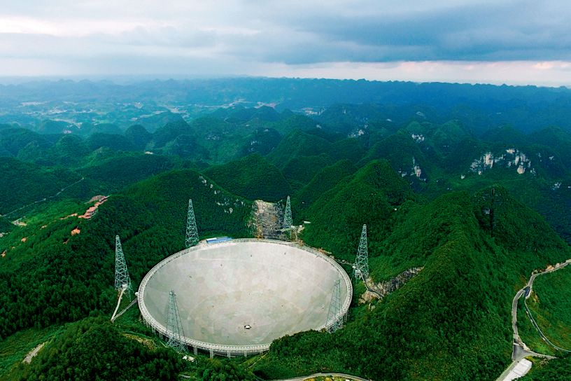 ▲ 500米口徑球面射電望遠(yuǎn)鏡(FAST)于2016年9月25日落成啟用(歐東衢攝/本刊)