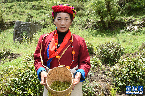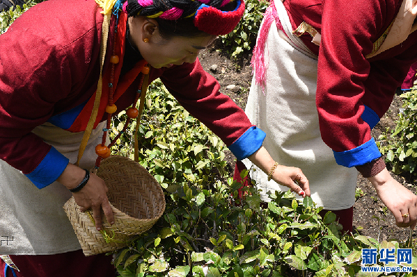 村民在勒鄉(xiāng)茶園采茶(5月12日 攝)。新華網(wǎng)記者 陳琳 攝