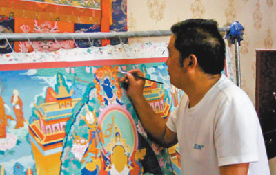 “心靜下來才可以作畫,進入狀態(tài)后我可以連續(xù)畫4個小時。一幅唐卡可以保存流傳千年,作畫的人和歷史能夠融為一體?!痹谏<獤|知眼里,“每次創(chuàng)作都是文化的傳承,都是心靈的凈化?!保ㄓ浾?袁泉)
