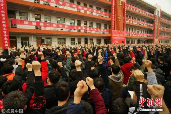 資料圖:一所中學(xué)舉行高考百日誓師大會(huì)。