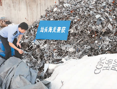 5月22日,汕頭海關(guān)開展代號“1801”的打擊固體廢物走私“藍(lán)天”專項(xiàng)行動(dòng),摧毀一個(gè)走私廢五金等固體廢物入境的犯罪網(wǎng)絡(luò)。經(jīng)初步查證,該案涉及固體廢物約20萬噸,案值約22億元人民幣。袁國宏攝(新華社發(fā))