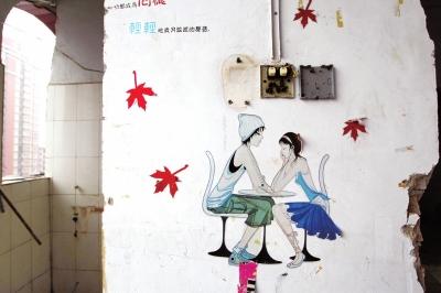 鄭州一處拆遷房屋墻壁上的貼畫,顯示出原主人對(duì)幸福的憧憬。記者 洪波 攝影