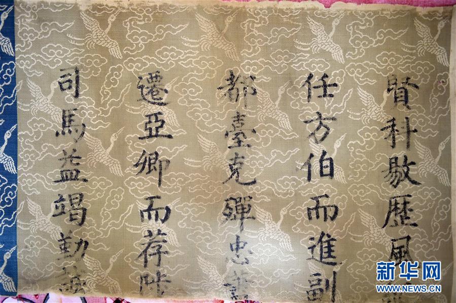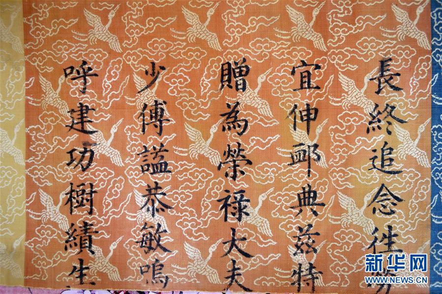 這是5月23日拍攝的在河北南宮發(fā)現(xiàn)的明成化年間七彩圣旨局部。新華社記者 朱旭東 攝