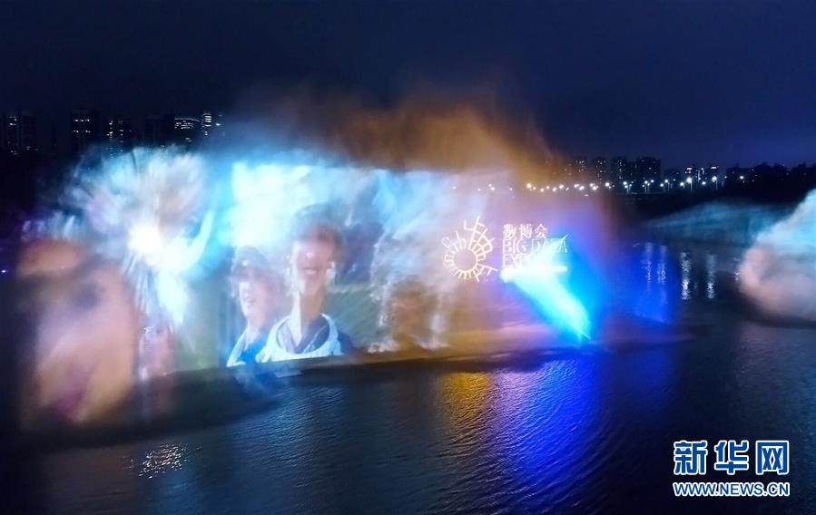 市民在貴陽(yáng)市觀山湖公園內(nèi)體驗(yàn)數(shù)谷之夜活動(dòng)中的水幕電影(5月22日攝)。新華社記者劉續(xù) 攝