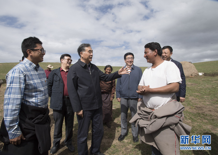 5月21日至23日,中共中央政治局常委、全國政協(xié)主席汪洋在甘肅甘南藏族自治州調研。這是5月22日,汪洋在夏河縣曼瑪村看望貧困牧民。新華社記者李學仁 攝
