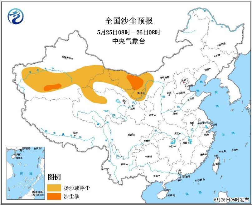 全國(guó)沙塵預(yù)報(bào)圖(5月25日08時(shí)-26日08時(shí))