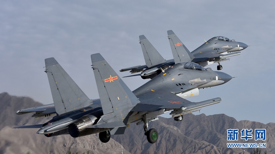 參加空軍“紅劍-2018”體系對抗演習(xí)的戰(zhàn)機聽令起飛(5月24日攝)。新華社發(fā)(溫志軍攝)