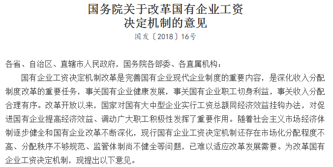 25日,國(guó)務(wù)院正式發(fā)布《關(guān)于改革國(guó)有企業(yè)工資決定機(jī)制的意見》,一份影響著近4千萬國(guó)企員工工資的重磅文件正式面世!