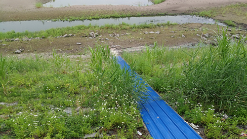 一家離某縣城較近的農(nóng)莊,排污的場景更為觸目驚心。當(dāng)半月談?dòng)浾咴儐栟r(nóng)莊老板,污水如何排放?這位女老板的回答是:“我們排到了下水道?!笨僧?dāng)記者走到廚房背后,一股臭味迎面撲來,只見旁邊一個(gè)小水塘里,堆滿黑色或者黃色的濕乎乎、黏稠狀污物。水塘一側(cè),是稻田和一條灌溉水渠——原來,這就是所謂的“下水道”。