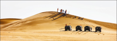 參訓(xùn)人員在巴丹吉林沙漠集結(jié)?!↑S思予攝