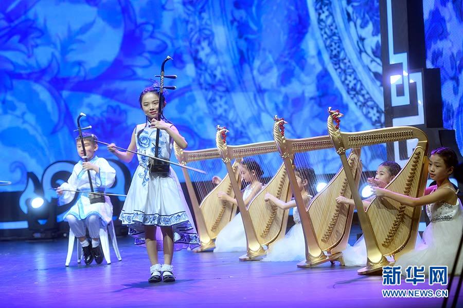 2017年8月22日,來自中國的青少年在北京舉行的2017年上合組織成員國青少年藝術(shù)展演上表演民樂合奏《國風》。新華社記者 金良快 攝