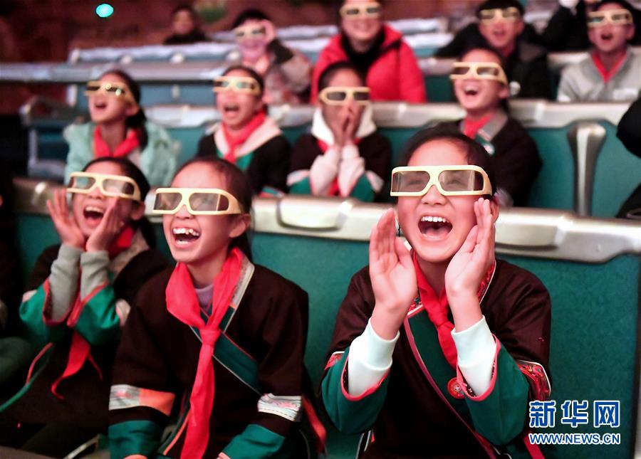 在廣西柳州市景行小學(xué)柳東校區(qū),來(lái)自三江侗族自治縣和融安縣大山里的留守兒童觀看3D動(dòng)畫(huà)片(1月4日攝)。當(dāng)日,柳州市舉行關(guān)愛(ài)留守兒童城市圓夢(mèng)活動(dòng)。新華社發(fā)(黎寒池 攝)