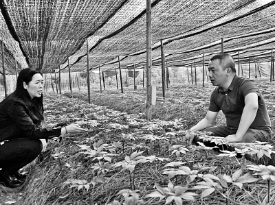 科研人員在文山苗鄉(xiāng)三七種植基地查看三七種苗。本報(bào)記者 張勇攝/光明圖片