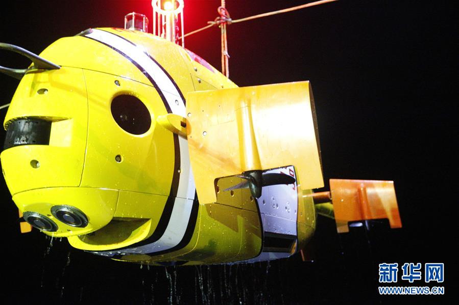 “海斗”號(hào)自主遙控水下機(jī)器人在西太平洋進(jìn)行下潛實(shí)驗(yàn)(2016年7月18日攝)。新華社發(fā)(沈陽(yáng)自動(dòng)化所提供)