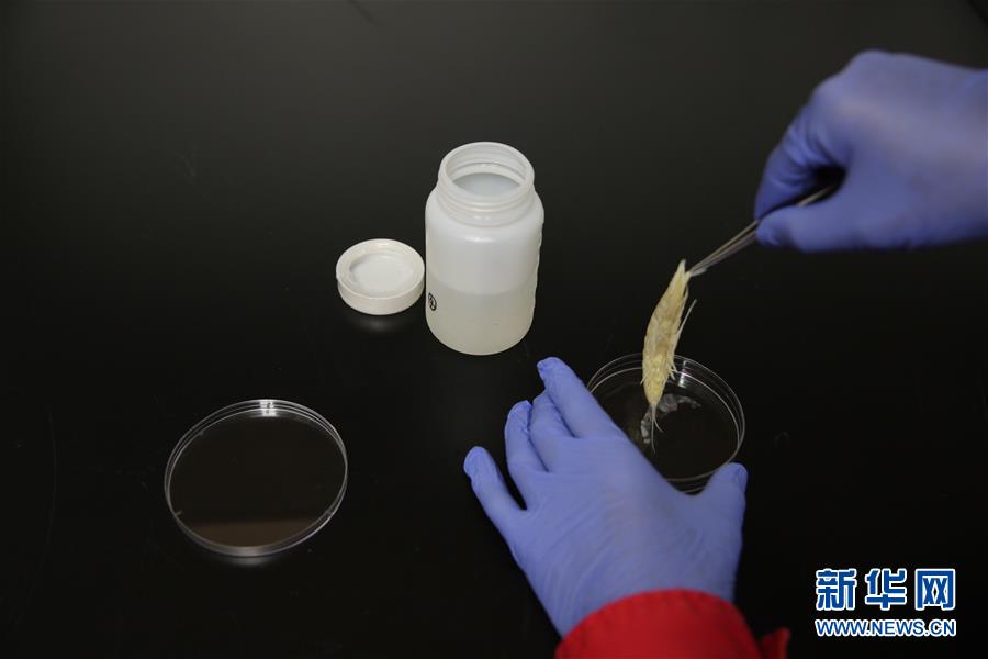 科考人員在“探索一號(hào)”船上整理從深海獲取的生物樣品鉤蝦(8月12日攝)。新華社記者 金立旺攝