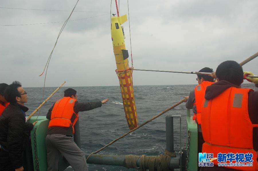 "海燕"號(hào)水下滑翔機(jī)在南海北部下海測(cè)試(3月16日攝)。
