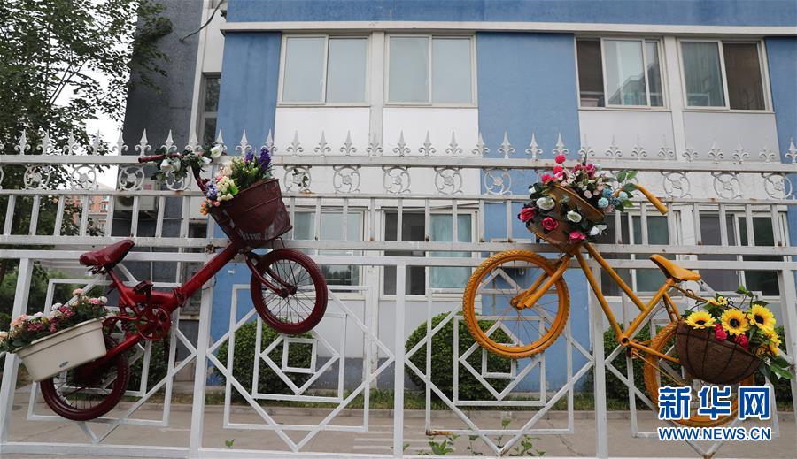 當(dāng)日,北京市豐臺(tái)區(qū)花鄉(xiāng)天倫錦城社區(qū)的居民利用社區(qū)內(nèi)廢棄的自行車,進(jìn)行噴漆、裝上花籃等改造,把這些廢舊自行車變成裝飾品,自己動(dòng)手裝點(diǎn)社區(qū)環(huán)境。