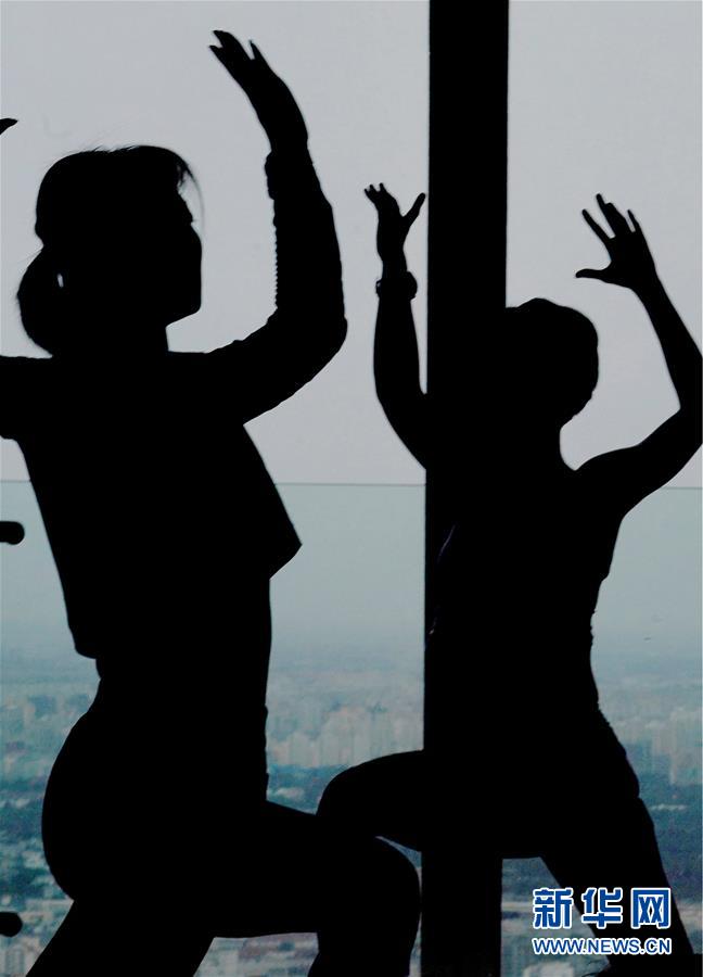 當(dāng)日,數(shù)名瑜伽愛(ài)好者在專(zhuān)業(yè)瑜伽教練的帶領(lǐng)下在北京國(guó)貿(mào)大酒店70層以上的高樓層練習(xí)瑜伽,體驗(yàn)高空練習(xí)瑜伽的樂(lè)趣。