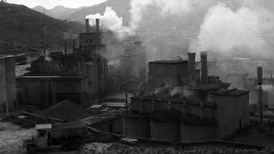 1980年代的浙江省湖州市安吉縣天荒坪鎮(zhèn)余村炸山采礦、煙囪林立(新華社發(fā)),如今這里的綠水青山成了金山銀山(新華社記者翁忻旸 攝)。