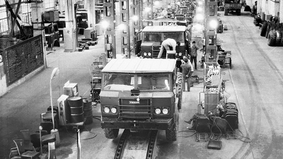 1984年,當(dāng)年國慶受閱車從陜汽麥李西溝重型軍用汽車基地下線(新華社發(fā));2018年3月15日,卡車從陜重汽汽車總裝配廠下線(新華社記者 邵瑞 攝)。