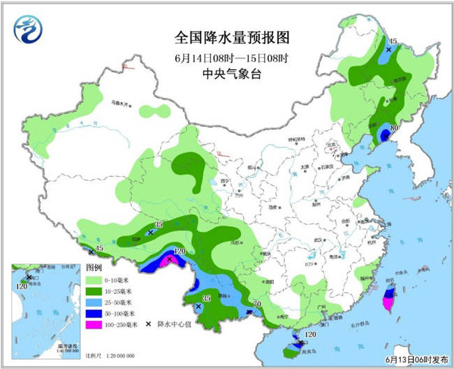 張濤:由于雨帶南移,南方強(qiáng)降水范圍已經(jīng)減小,因此中央氣象臺(tái)13日6時(shí)解除暴雨藍(lán)色預(yù)警,但預(yù)計(jì)13日8時(shí)至14日8時(shí),廣東南部沿海、廣西南部、云南西部和東北部、西藏東南部、四川西部等地有大雨或暴雨(50~90毫米),部分地區(qū)并伴有短時(shí)強(qiáng)降水,局地有雷暴大風(fēng)和冰雹。14日以后,廣東、廣西地區(qū)降雨整體減弱,華南地區(qū)降雨主要集中在雷州半島沿海一帶和海南中北部地區(qū)以及南海北部海面上??赡艹霈F(xiàn)伴有短時(shí)強(qiáng)降水、雷暴大風(fēng)或冰雹等強(qiáng)對(duì)流天氣。