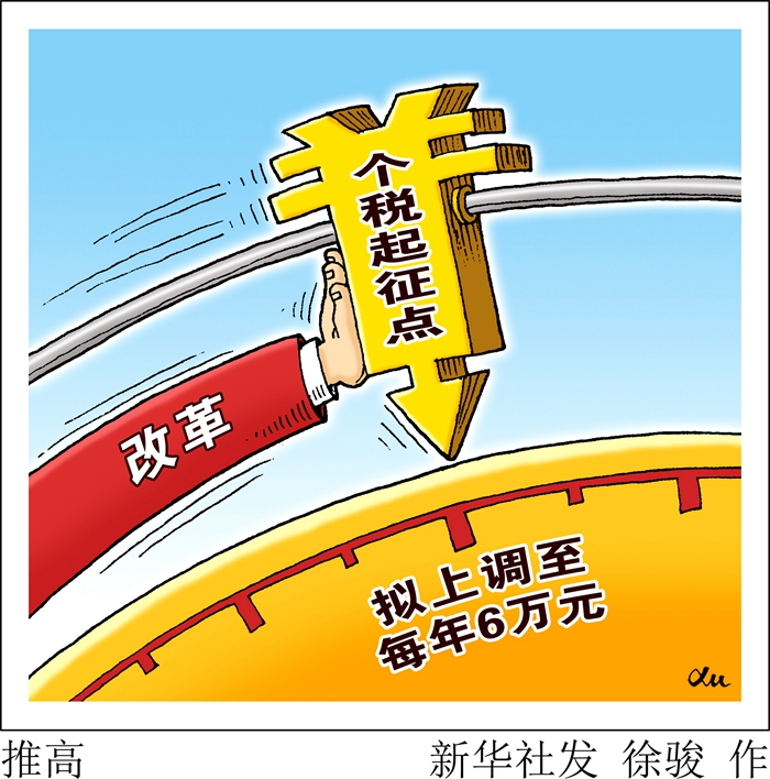 6月19日提請(qǐng)全國(guó)人大常委會(huì)初次審議的個(gè)人所得稅法修正案草案明確規(guī)定:對(duì)部分勞動(dòng)性所得實(shí)行綜合征稅;優(yōu)化調(diào)整稅率結(jié)構(gòu);綜合所得基本減除費(fèi)用標(biāo)準(zhǔn),即通常說(shuō)的起征點(diǎn),提高至5000元/月(6萬(wàn)元/年);首次增設(shè)專(zhuān)項(xiàng)附加扣除……這標(biāo)志著我國(guó)建立綜合與分類(lèi)相結(jié)合的個(gè)人所得稅制改革邁出實(shí)質(zhì)性的一步。新華社發(fā) 徐駿 作