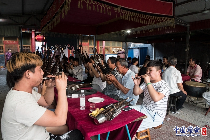 每年農(nóng)歷四月十九、二十、二十一,雄安新區(qū)安新縣圈頭村,男女老少都會聚集在村里的藥王廟,音樂會的傳人們演奏起各式傳統(tǒng)曲目,以此來祭祀藥王,感念千百年來對當(dāng)?shù)卮迕竦挠幼o(hù)。