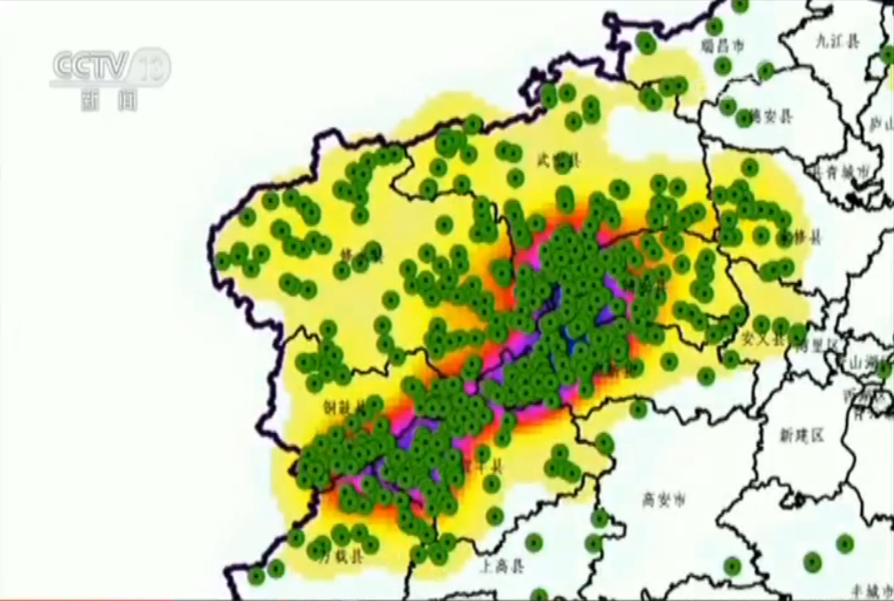 樂洞河支流眾多,幾乎有落差的支流都建上了小水電。而記者將掌握的資料進(jìn)行特殊處理,在江西省地圖上標(biāo)出所有小水電站的位置,這些密密麻麻的小綠點便鋪滿了整張地圖,在水資源豐沛處,綠點甚至連成一片。