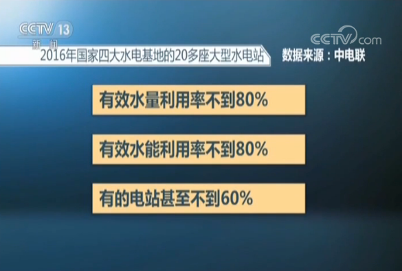 中電聯(lián)給出的數(shù)字,四川省調(diào)峰棄水電量由2013年的76億度,增加至2016年的140億度;云南省2014至2016年裝機棄水電量分別達(dá)到173億、153億和314億度。2016年國家四大水電基地的20多座大型水電站有效水量利用率、有效水能利用率不到80%,有的電站甚至不到60% 。