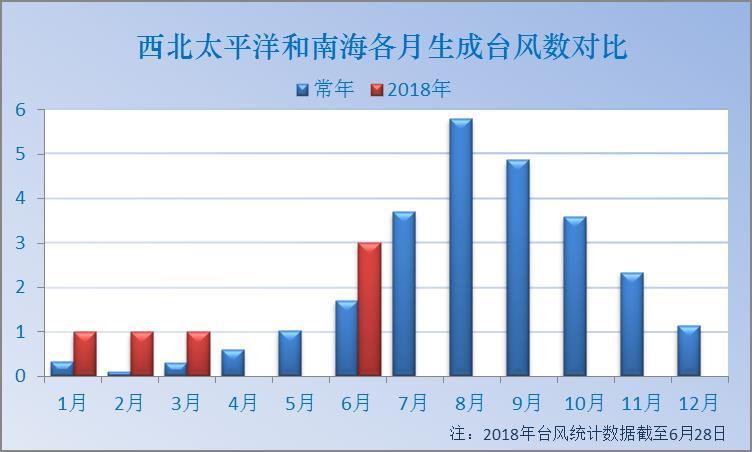 到目前為止,今年西北太平洋和南海已經(jīng)有6個(gè)臺(tái)風(fēng)生成,1個(gè)臺(tái)風(fēng)登陸我國(guó),常年1-6月平均會(huì)生成4.1個(gè)臺(tái)風(fēng),登陸0.63個(gè)。實(shí)際上今年無(wú)論生成臺(tái)風(fēng)個(gè)數(shù)還是登陸個(gè)數(shù)都比常年平均偏多。
