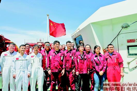 今年上半年,新華每日電訊記者跟隨我國新一代海洋科學(xué)考察船“科學(xué)”號,到西太平洋麥哲倫海山進(jìn)行為期40多天的科學(xué)考察?!叭嗽谝黄鸾芯蹠?心在一起叫團(tuán)隊”,在科考船上,一批共產(chǎn)黨員挑起了工作的大梁,黨旗在海風(fēng)中高高飄揚(yáng)。