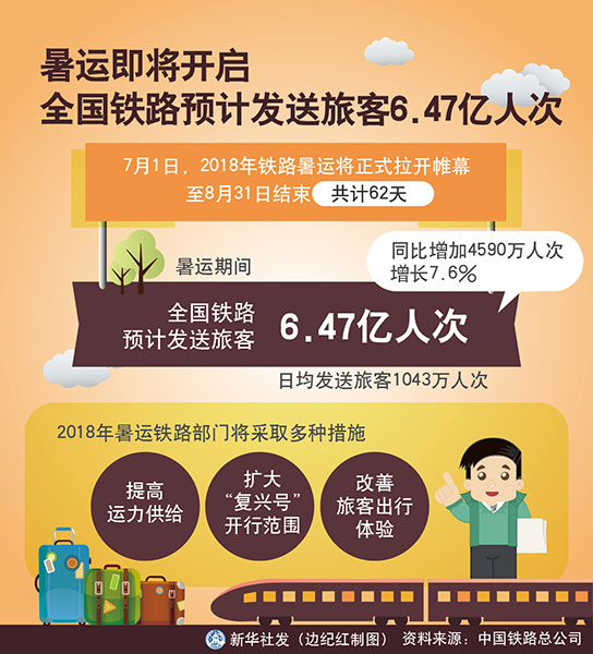 圖表:暑運(yùn)即將開啟 全國(guó)鐵路預(yù)計(jì)發(fā)送旅客6.47億人次 新華社發(fā) 邊紀(jì)紅 制圖