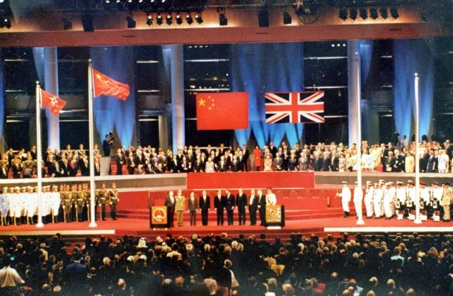 1997年6月30日至7月1日凌晨,中英香港政權(quán)交接儀式在香港會展中心舉行。新華社發(fā)