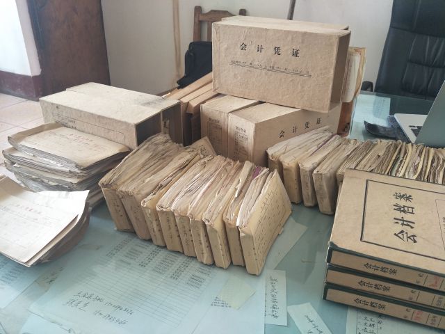 村里有一個(gè)傳統(tǒng),每一筆村集體開支都記在賬上。這些賬目裝滿了兩個(gè)大木柜,有些紙張?jiān)缫逊狐S,字跡開始模糊。