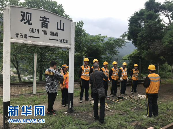 寶雞工務(wù)段觀(guān)音山橋隧養(yǎng)修工區(qū)的職工們?cè)谧鲭[患排查前的準(zhǔn)備工作。新華網(wǎng) 王頔 攝