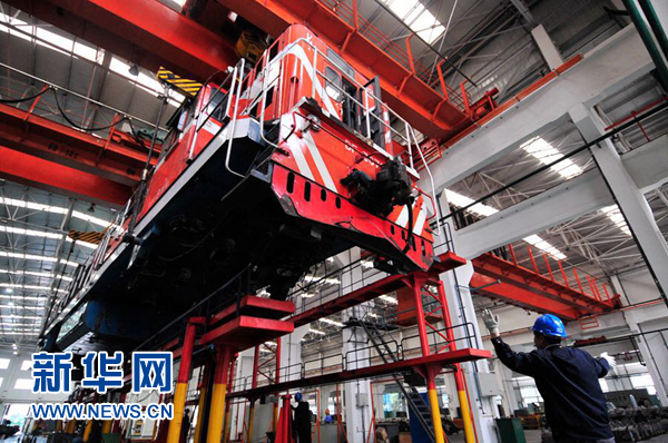 在中國(guó)鐵路西安局集團(tuán)有限公司寶雞機(jī)車(chē)檢修廠(chǎng)聯(lián)合檢修庫(kù)內(nèi),職工們正緊鑼密鼓地進(jìn)行機(jī)車(chē)落車(chē)組裝作業(yè)。