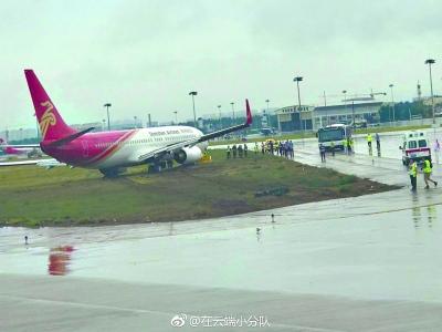 有網(wǎng)友將現(xiàn)場視頻發(fā)布在網(wǎng)絡(luò)上,視頻中顯示,一架深圳航空的飛機(jī)停在機(jī)場跑道旁的草坪上,草坪上有明顯的飛機(jī)輪胎印記,多輛救援車輛及機(jī)場大巴??吭陲w機(jī)附近。