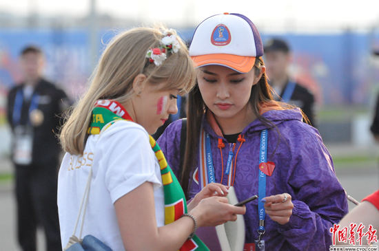 盡管球迷的問題繁多且復雜,但對徐琛和田晨而言,在球迷最需要的時候提供服務,這種成就感可以彌補一些不能走進球場的遺憾。田晨發(fā)現(xiàn),相較而言,中國球迷普遍靦腆,很少有人主動上前詢問,他們更習慣于埋著頭用手機進行查詢,為了讓更多中國球迷得到幫助,他和徐琛申請在俄語、英語之外增加中文廣播,并在證件上貼上了五星紅旗的標志,“這樣做的效果好了很多,大家遠遠地就會說有個中國志愿者,就圍了上來,還主動合照?!遍L相甜美且會四國語言的徐琛,也因此以“世界杯最美中國志愿者”上了熱搜,每次有中國球迷走過來,其他志愿者就會跟她說:“你的中國朋友又來找你了?!?/p>